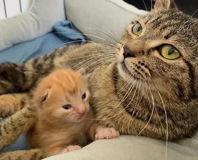 志愿者莉比说,茉茉刚进家门时特别紧张,稍微有点响动就吓得缩成一团。它不习惯人类,不敢随便让人靠近。但它对团子特别好,总是把小家伙护在怀里,舔毛喂奶,一刻不松懈。团子在妈妈的照顾下,长得飞快,肚子圆滚滚的,眼睛亮晶晶,活泼得像个小皮球。